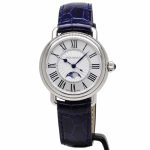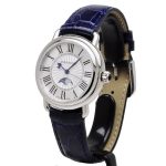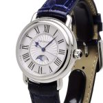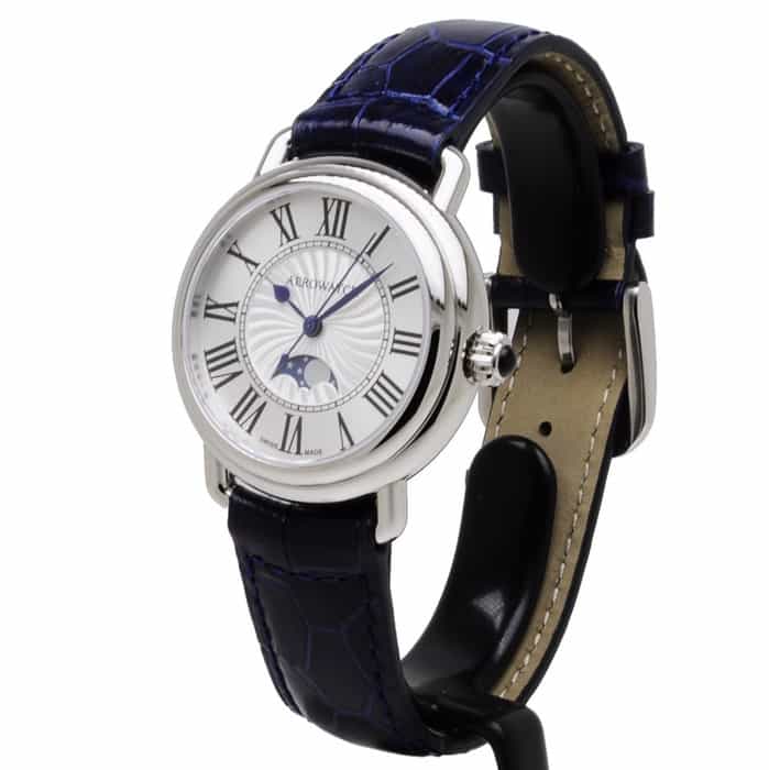 Dial: Silver with Roman numerals, moon phase and blue steel hands