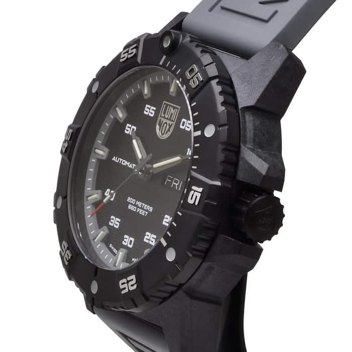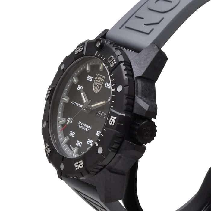 The bezel of the Master Carbon SEAL Automatic is stainless steel with an IP black plating, and the bezel markings are in a very cool steel colour. The Master Carbon SEAL Automatic is equipped with our Luminox Light Technology, making sure the watch is totally visible in low or no light conditions, never having to rely on an exterior light source.