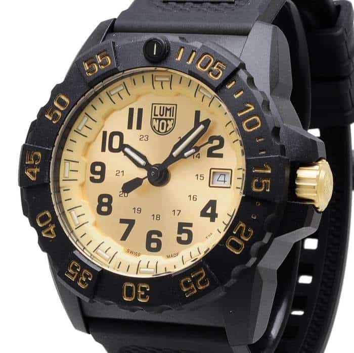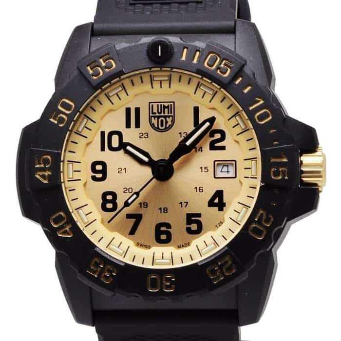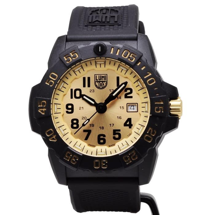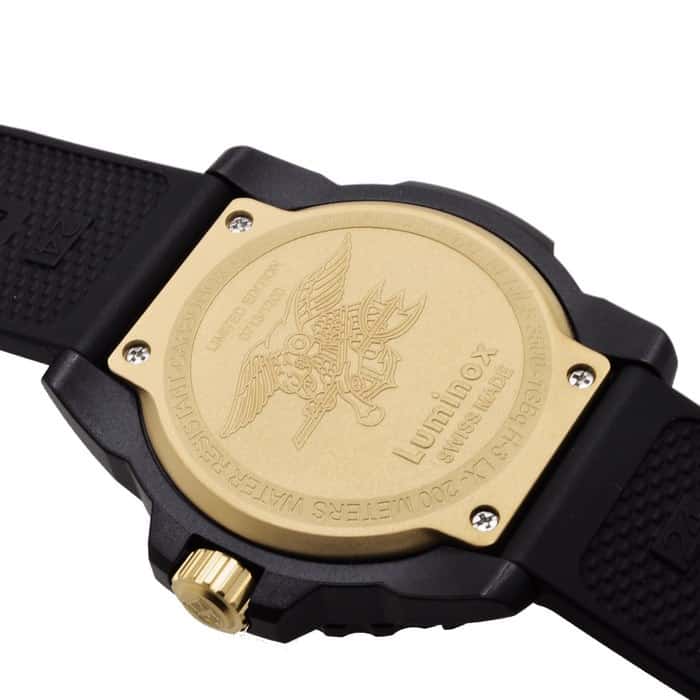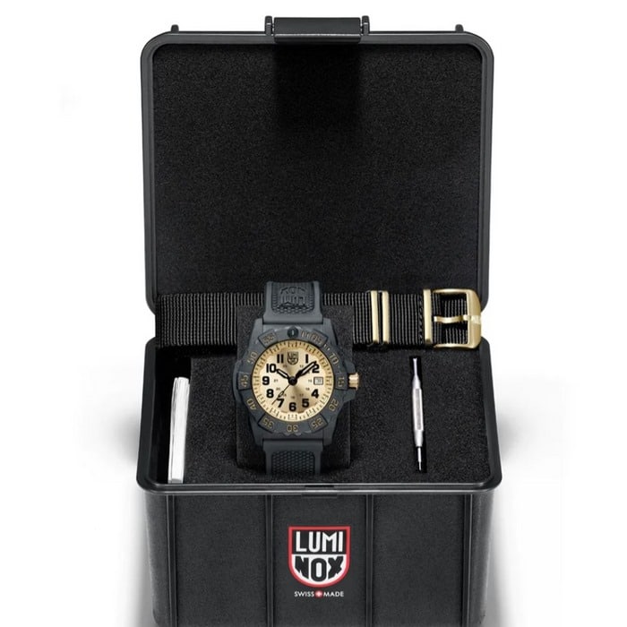 Luminox Navy Seal 3500 Series Limited Edition Set XS.3505.GP.SET is a Gents watch from Navy SEAL collection. Case material is Carbonox, which stands for a high quality of the item while the dial colour is Gold. 200 metres water resistance will allow professional marine activity, skin diving and high impact water sports, but not deep sea or mixed gas diving. Watch comes with an original box and a guarantee from Luminox.