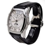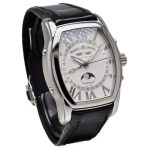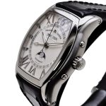 Dial: Solid silver with day of the week, month, date, and moon phase display