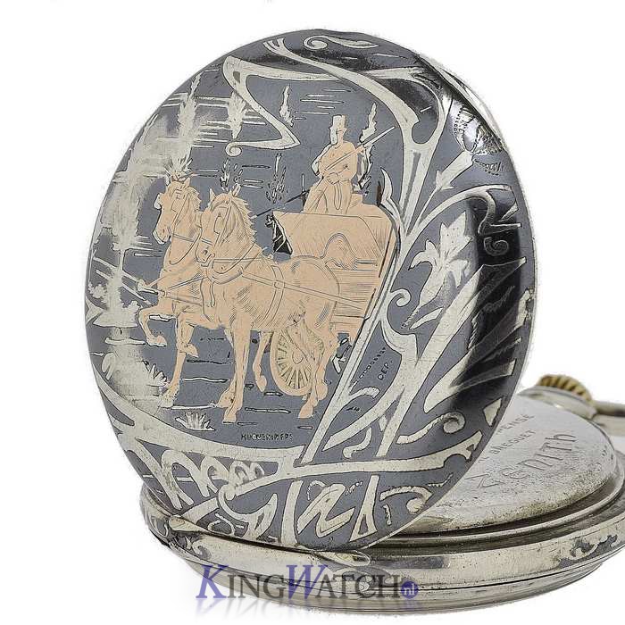 - Case: Silver 50 mm. Handmade by Huguenin Frères with Niello made Pickture
